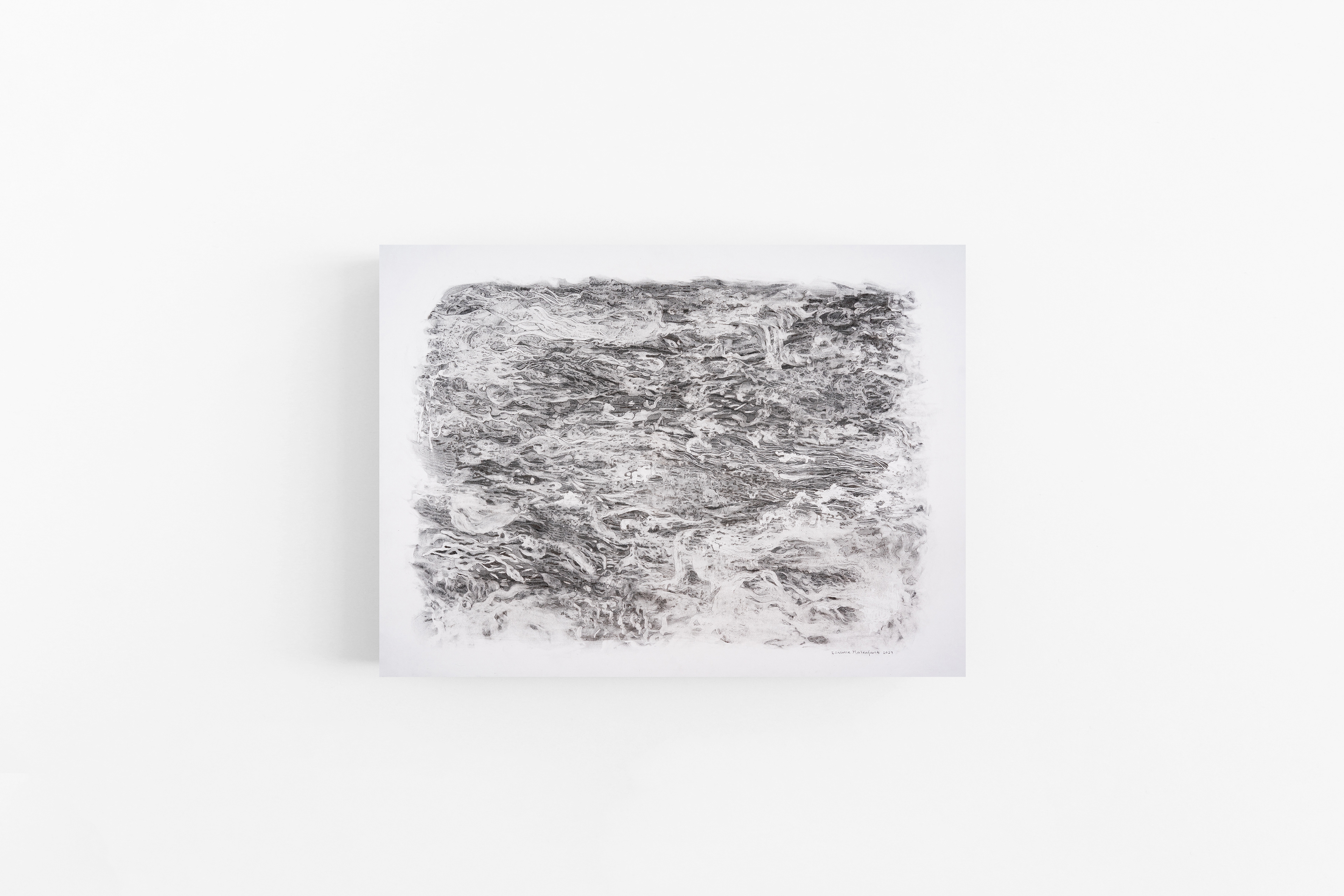 Sénescence, 2023, fusain sur papier, 46 x 61 cm.